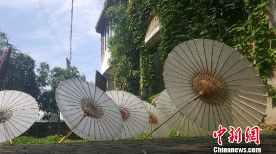 中新網杭州8月10日電(記者 趙曄嬌 實習生 陳笑樂)在浙江省杭州市余杭區,有一對祖孫,做著傳統的余杭油紙傘,延續著一段紙傘情緣。