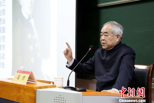 中新網青島10月27日電 (記者 胡耀傑)山東大學藝術學院名譽院長范曾先生10月27日來到山東大學青島校區講學,為山大師生作了一場題為《宇宙無限初心不朽》的學術報告。