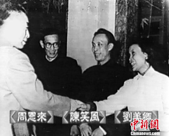 周恩來總理接見陳笑風(右二)等廣東文藝代表。 受訪者提供 攝