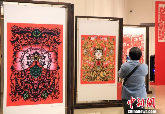 中國傳統工藝(剪紙)大賽成果展吸引觀眾。 潘索菲 攝