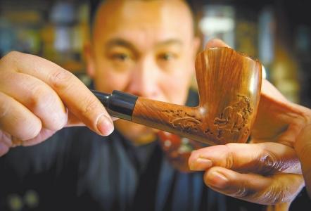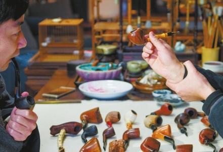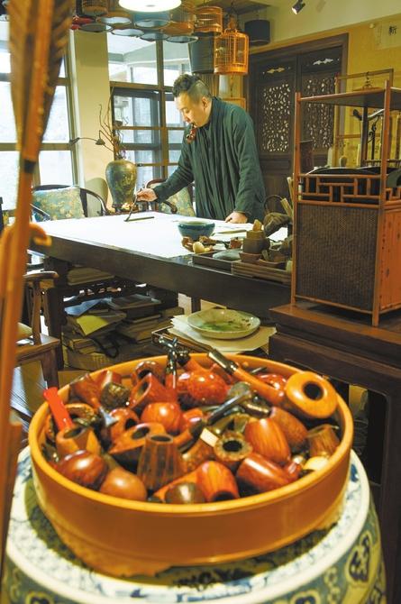 寬窄巷子邊長大的馬勇自小就喜歡各種器物,成年後更是癡迷收藏。七八年前,一朋友從荷蘭回國,送他一只大班煙鬥和一盒煙草。煙癮奇大的他當即抽了一鬥,哪知苦澀不堪,他順手丟在一邊。雖然不好抽,他有空時還是常把這只鬥拿來反復把玩。“東西好玩,就是因為它過程的繁瑣,裝煙抽鬥真是一門難度頗高的技術活,是徹徹底底的慢生活,心急火燎的人是抽不了鬥的。”喜歡讀書的他閱讀了大量書籍,“書上說煙草的味道是如何的醇厚香甜,我都沒遇到,始終是個苦味!”玩了一年多,馬勇還是沒找到道。