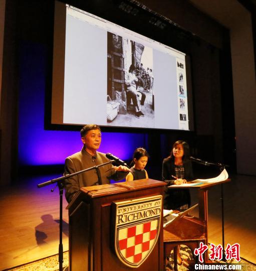 -攝影家龔建華(左)在里士滿大學劇場“我拍上海36年” 專題演講 鐘欣 攝