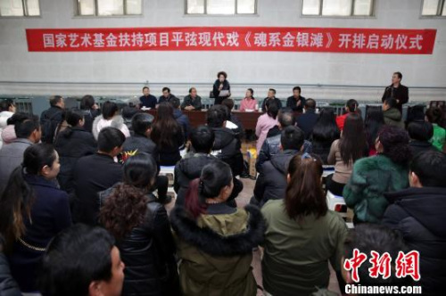 2月21日,國家藝術基金扶持項目平弦現代戲《魂係金銀灘》在青海西寧開排。圖為啟動儀式現場。 羅雲鵬 攝