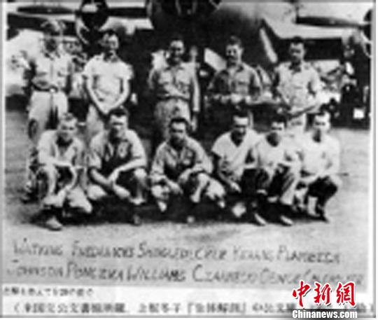 圖為二戰期間美國飛行員在B29轟炸機前合影,日本九州大學將其中的8名戰俘進行活體解剖實驗。 甘肅省博物館供圖