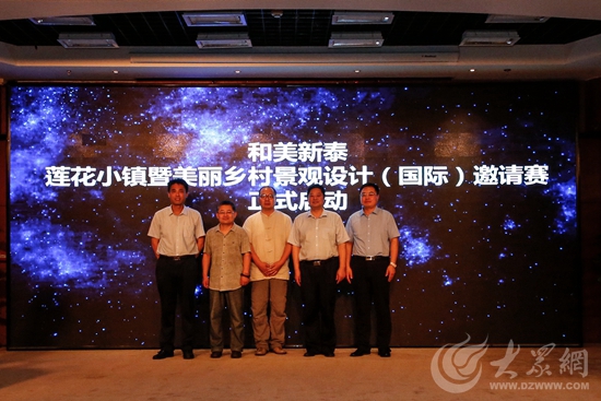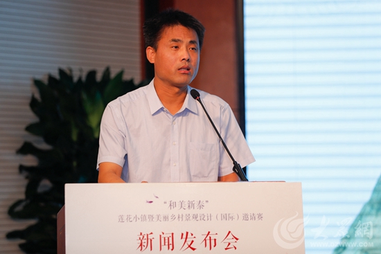 大眾網7月4日訊(記者 劉國鬱)今日上午,“和美新泰”蓮花小鎮暨美麗鄉村景觀設計(國際)邀請賽新聞發布會在濟南舉行。會上,山東省旅遊發展委員會產業促進處處長季將、山東省互聯網傳媒集團大眾網副總經理陳月軍、生活日報副總編輯鄭義風、中共新泰市委常委、新泰市人民政府副市長劉向軍、住建部傳統民居保護專家、山東建築大學教授姜波共同啟動邀請賽。大賽執委會向與會者推介新泰資源、介紹大賽基本情況,並對實施細則進行了詳細解讀。