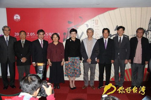 臺北故宮博物院院長馮明珠(中臺南市長賴清德(右三)等嘉賓出席特展記者會(你好臺灣網 圖)