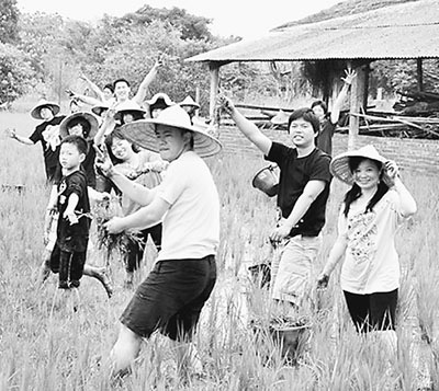 訪客在臺南土溝社區體驗農事。 資料圖片