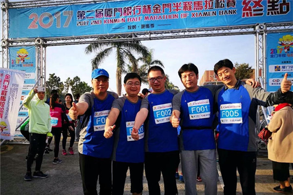參加馬拉松賽的選手合影留念。(廈門銀行鄭伊娜供圖 中國臺灣網發)