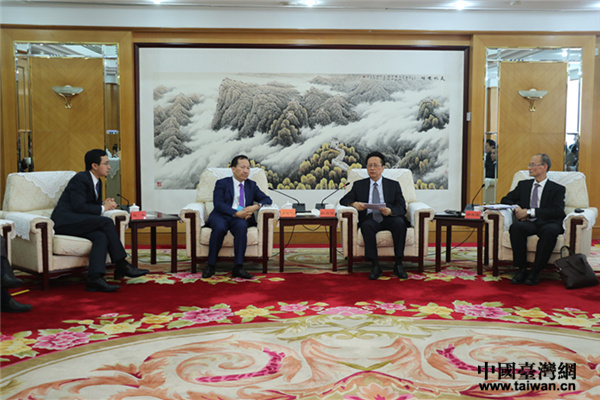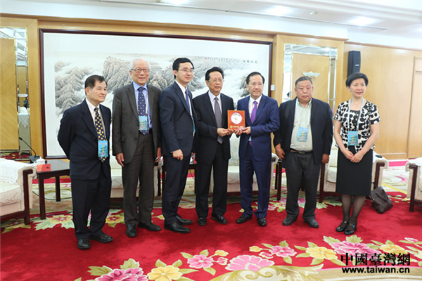 中國和平統一促進會副會長陳昌智(右二)在北京會見了北美洲各統促會聯合訪問團一行。(中國臺灣網 郜利敏 攝)