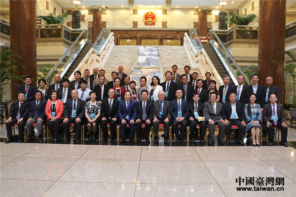 在全國人大會議中心,中國統促會副會長陳昌智會見北美洲各統促會聯合訪問團一行,並合影留念。(中國臺灣網 郜利敏 攝)