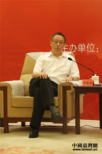 全國政協副主席、民革中央常務副主席鄭建邦出席座談會並致辭。(中國臺灣網 郜利敏 攝)
