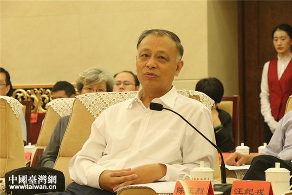 中國軍事科學院戰略研究部研究員、《黃埔》雜志編委陳宇在座談會上發言。(中國臺灣網 郜利敏 攝)