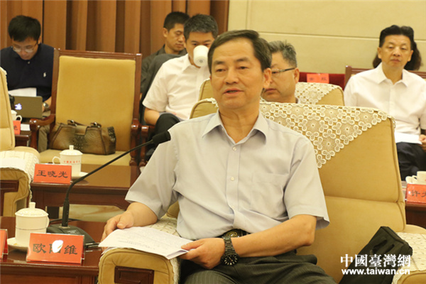 國防大學教授、黃埔軍校十六期生田申之子歐陽維在座談會上發言。(中國臺灣網 郜利敏 攝)