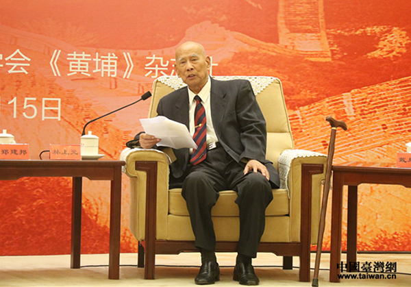 黃埔軍校同學會會長林上元出席座談會並致辭。(中國臺灣網 郜利敏 攝)