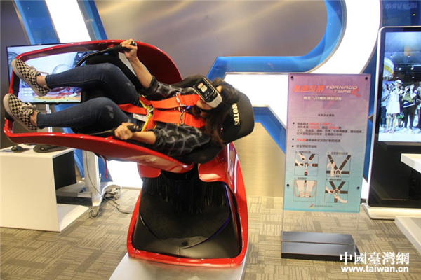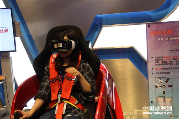 臺灣同學體驗VR遊戲“急速風暴”。(中國臺灣網 王莉婷 攝)