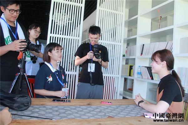 兩岸學子採訪網龍網絡公司臺灣就業者葉真慧。(中國臺灣網 王莉婷 攝)