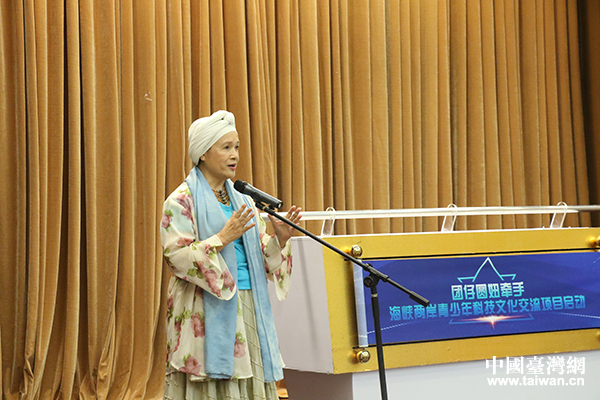參與《團仔圓妞》劇本創作的臺灣多元文化藝術團團長亞磊絲·泰吉華坦致辭。(中國臺灣網 普燕 攝)