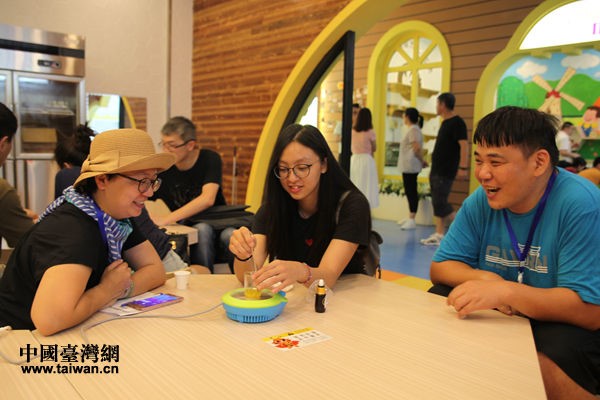 臺灣青年在慈蜂堂黑蜂故事館制作蜂蜜唇膏。(中國臺灣網 陳文韜 攝)