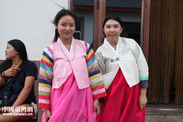 臺灣青年試穿朝鮮族服裝。(中國臺灣網 陳文韜 攝)