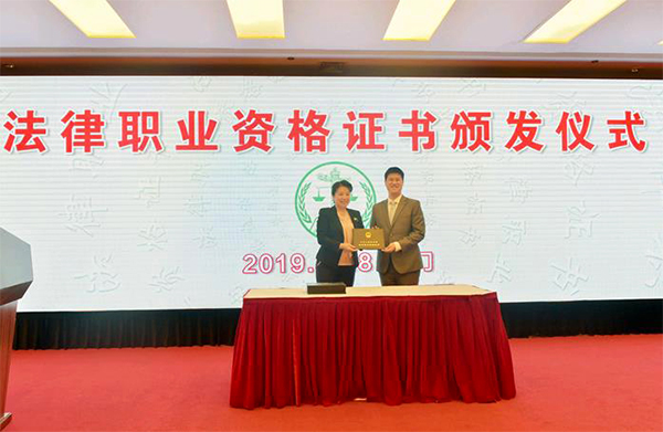 28日上午,司法部在廈門舉行臺灣居民法律職業資格證書頒發儀式。(來源:司法部網站)