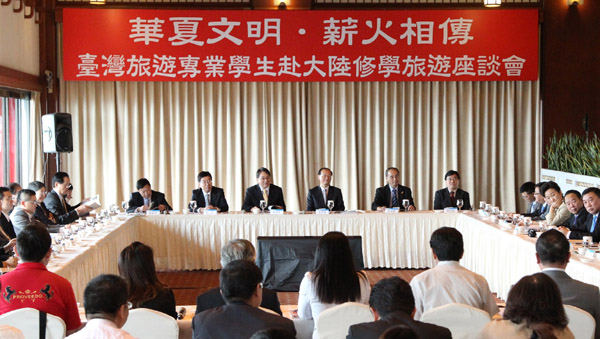 據介紹,在去年海峽兩岸旅遊交流圓桌會議上,海旅會宣布邀請500名臺灣旅遊專業學生到大陸開展“華夏文明·薪火相傳”修學旅遊活動,得到臺灣20多所院校的積極響應,500多名學生分四批次到北京、陜西、福建開展修學旅遊活動,取得了積極效果。座談會上,參與此次活動的兩岸旅遊院校師生代表和旅遊企業負責人暢談了體會,表達了擴大兩岸修學旅遊的強烈願望。(中國臺灣網 郜利敏)