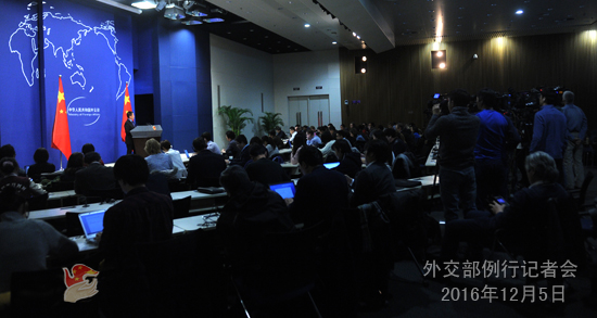 答:關于這件事情,周末王毅外長、外交部發言人和國臺辦發言人都已經表明了中方的嚴正立場。至于你提到的問題,我可以告訴你的是,中方在北京和華盛頓都向美國有關方面提出了嚴正交涉。中方在臺灣問題上的嚴正立場全世界都非常清楚。美方包括特朗普當選總統及其團隊我想也很清楚中方在這一問題上的嚴正態度。