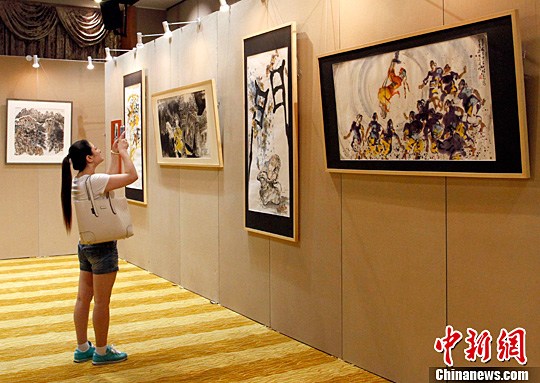 展覽現場,臺灣畫家歐豪年的作品《鯉魚跳龍門》格外引人關注。這位年逾八旬的畫家向中新社記者表示,希望年輕後輩盡快成長起來;期待兩岸畫家的“播種、栽秧、施肥”,早日迎來“秋收的季節”,使中華民族的藝術在國際上更受重視,甚至引領國際藝術的發展。