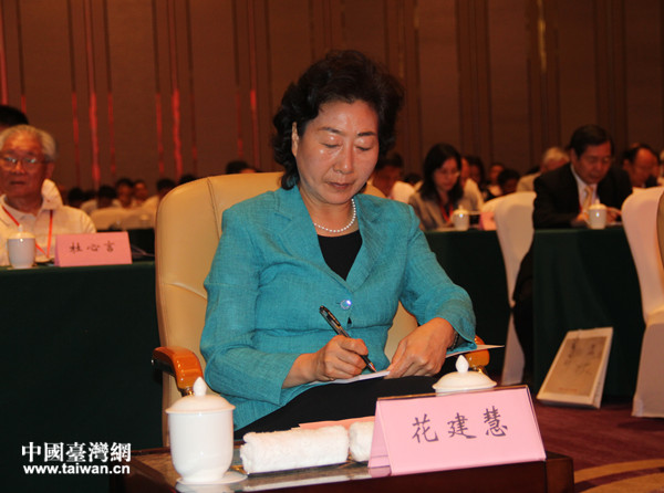 安徽省副省長花建慧認真聆聽臺灣環保業者主題演講。(中國臺灣網 高嘉澤 攝)