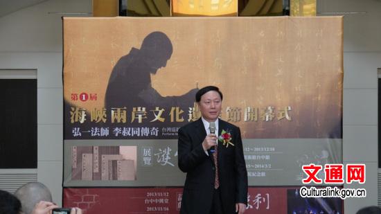 中國臺灣網11月18日消息 據文化部網站消息,11月12日,首屆海峽兩岸文化遺產節在臺中市佛光緣美術館隆重開幕。文化部副部長、中華文化聯誼會顧問楊志今,浙江省文化廳副廳長柳河,臺中市副市長徐中雄,臺灣佛光山文教基金會執行長如常法師出席活動並致辭。文化部港澳臺辦公室主任助理李保宗、臺灣中部美術協會理事長倪朝龍等嘉賓出席開幕式活動。