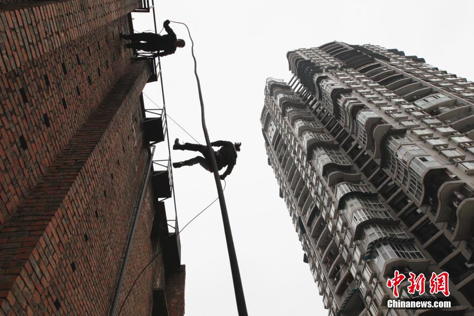 圖為重慶女特警表演高空速降。周毅 攝