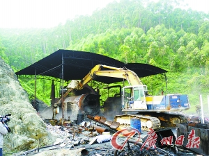 本報肇慶訊 (記者于敢勇 通訊員林壽智、于曉菲攝影報道)前日,廣寧縣牽頭組織工商、環保、公安等部門開展聯合執法行動,依法取締該縣橫山鎮荔洞村委會七星村一間非法煉油廠。
