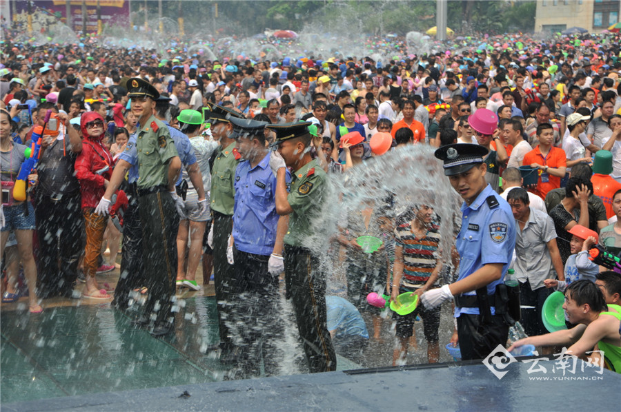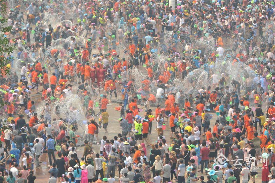 數萬名群眾和遊客共聚潑水廣場。來源:雲南網