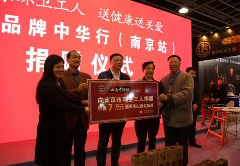 2014年4月17日, 由山西省商務廳、太原市商務局、外宣辦等聯合舉辦的“山西品牌中華行”係列品牌推廣活動回歸,于南京拉開大幕,金醋科技發起的“山西老陳醋與全國人民心連心”繼續前行,走進南京,向南京2000名環衛工人贈送總價值7萬元的6°新標準山西老陳醋,傳遞山西人民的熱切問候,傳遞山西老陳醋的健康關愛。
