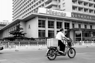 此事也引起市城管執法部門的重視,市局通過多個渠道,與北京飯店方取得聯係,對方也同意參加協調會。從去年10月至今年1月,平均每個月市區兩級城管部門以及市市政市容部門都會和北京飯店召開專題會議,但是內容為“Hisense”的違規戶外廣告至今仍然未拆除。