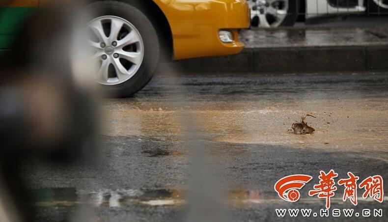 1月11日下午2時30分許,市民馬先生途經金花北路時,發現西側馬路中間的地面上正冒出泥漿,因為地鐵三號線正在金花北路上施工,馬先生懷疑是不是地鐵施工傷及地下的管網導致的。