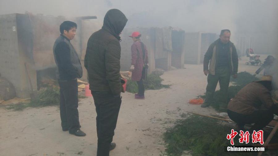 1月20日,四川省達州市,當地民眾在政府規劃點或城郊自行熏制臘肉,導致周邊煙霧裊繞。此前,當地曾有官員排查空氣質量重度污染的源頭時,發現熏臘肉成了達州空氣質量差的主要誘因。而網友紛紛吐槽:“每一座城市的霧霾都有自己的味道,達州味道的是臘肉味”。圖為達州民眾熏制臘肉。