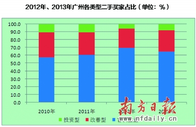 2010年—2013年廣州各類型二手買家佔比(單位:%)