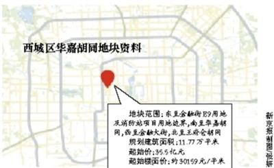 西城區華嘉胡同地塊位于金融街區域,規劃建築面積約11.77萬平米,起始價35.5億元,折合起始樓面價約為30159元/平米。這一起始樓面價僅次于去年出讓的朝陽區農展館地塊。農展館地塊起始樓面價約30430元/平米。