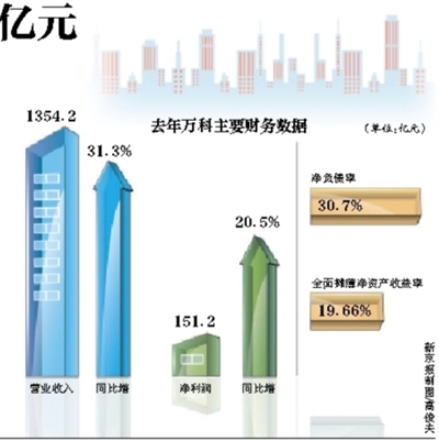 新京報訊 (記者張旭)昨天,龍頭房企萬科發布了2013年業績報。年報顯示,2013年萬科實現營業收入1354.2億元,同比增長31.3%;凈利潤151.2億元,同比增長20.5%。