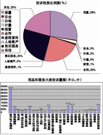 去年省消委會受理的投訴中,按投訴性質劃分,質量問題佔27.55%,合同問題佔23.07%,售後服務問題佔25.13%,分別較去年增長了37.29%、89.62%、47.68%,呈大幅度上升態勢。
