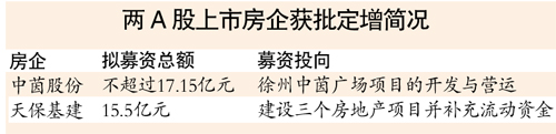 昨日晚間,兩家地產公司中茵股份、天保基建發布公告,稱其非公開發行A股股票申請獲得證監會通過。至此,地產再融資正式開閘。