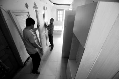 工人正在拆除天通苑一套違法群租房內的隔斷。京華時報記者歐陽曉菲攝