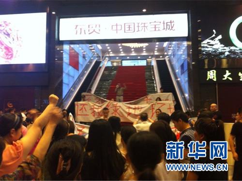 5月28日的東貿中國珠寶城顯得分外熱鬧,但這份熱鬧卻並非是來自顧客,而是因為一百多位東貿國際花園的業主在進行維權。小區內的綠地一而再、再而三地被物業私自鏟除,使得業主們終于走上了維權之路。