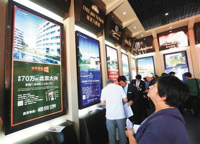 昨日,參觀者在北京房展會上瀏覽項目信息。羅偉 攝