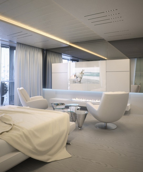 在未來的室內設計中,流體設計將會成為設計師們日後主攻的對象。Alexander Lysak先生負責這個高度現代化,而且散發出成熟和關注細節的方案,是一個通過最新技術無縫集成的空間。燈具以及一些現當代藝術將在其中佔據主導地位。這些將致力于打造一個寧靜的環境。在這樣一個如此開放的計劃中,要容納如此多的內容,這相當不容易,而設計師都做到了。
