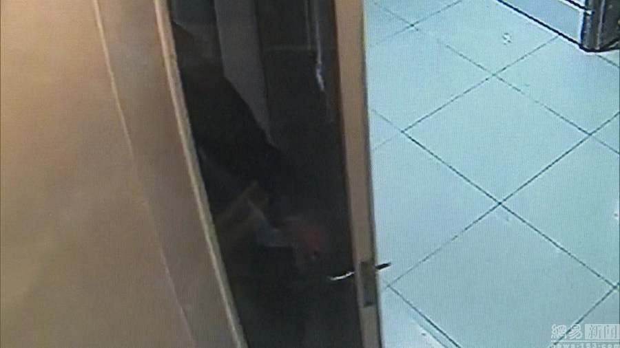 經過比對,民警發現該男子同該樓一住戶相貌相似,隨後上門搜查,在房間內找到了該男子的背包,包內發現了36把門把手,並當場將該男子抓獲。圖為監控畫面。