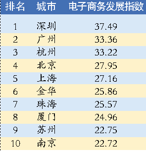 本報訊 (記者阮元元)作為全國首個“電子商務示范城市”,深圳去年的電商發展交出了傲人答卷。昨日,阿里研究院發布《2013年中國城市電子商務發展指數報告》。記者在報告中看到,根據網商密度和網購消費者密度等綜合指標計算後,在“2013年中國電子商務發展百佳城市”(以下簡稱“榜單”)排名中,深圳高居榜首,廣州、杭州分列第二、第三位。