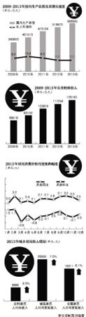 2013年,我國GDP總量實際增長7.7%,扣除人口自然增長因素後,人均GDP實際增長7.1%,與之對應的全國居民人均可支配收入實際增長8.1%。即使增長稍慢的城鎮居民人均可支配收入7.0%的增幅,與人均GDP7.1%的增幅也是基本相當的。所以,應該說2013年我國實現了居民收入和國內生產總值增長基本同步。