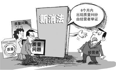 新《消法》則給了消費者破解“維權成本高”的一把“利器”,叫“舉證責任倒置”。對于消費者買的電腦、汽車、電視機、電冰箱、空調、洗衣機等商品或裝飾裝修服務、6個月內發現質量瑕疵,雙方存在爭議、互不承認的,得由商家來承擔舉證責任。也就是說,商家先花錢去做鑒定,之後檢測證明屬于誰的責任,再由誰來擔負。