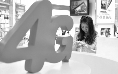 昨天,中國聯通正式啟動4G商用,一位顧客在聯通4G體驗廳里體驗4G手機。